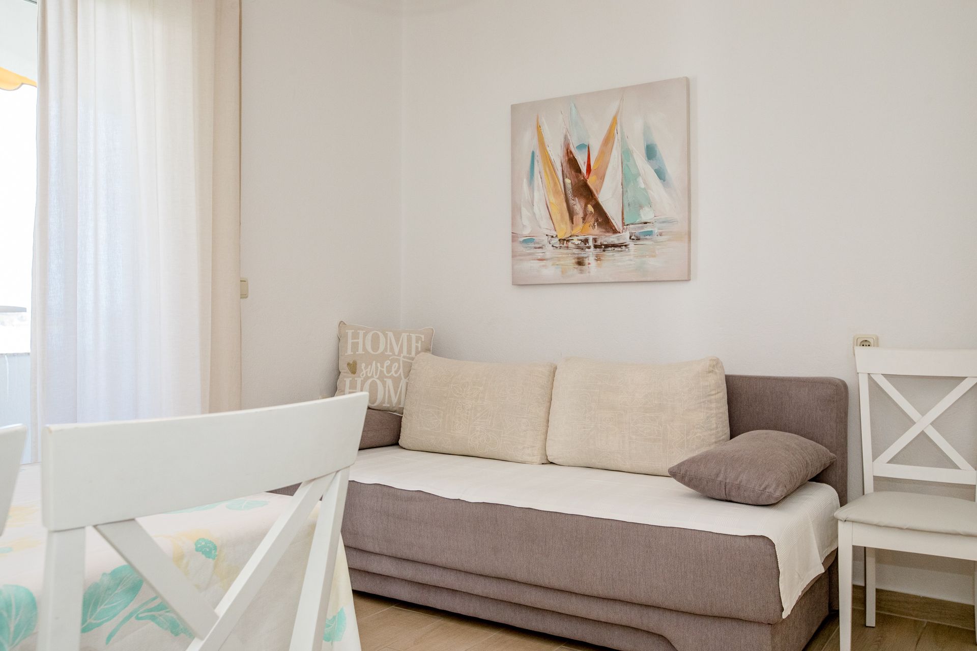 The apartment provides guests with a patio, sea views, a seating area, satellite flat-screen TV, a fully equipped kitchen with a dishwasher and a fridge, and a private bathroom with shower. An oven and stovetop are also provided, as well as a kettle and a coffee machine.